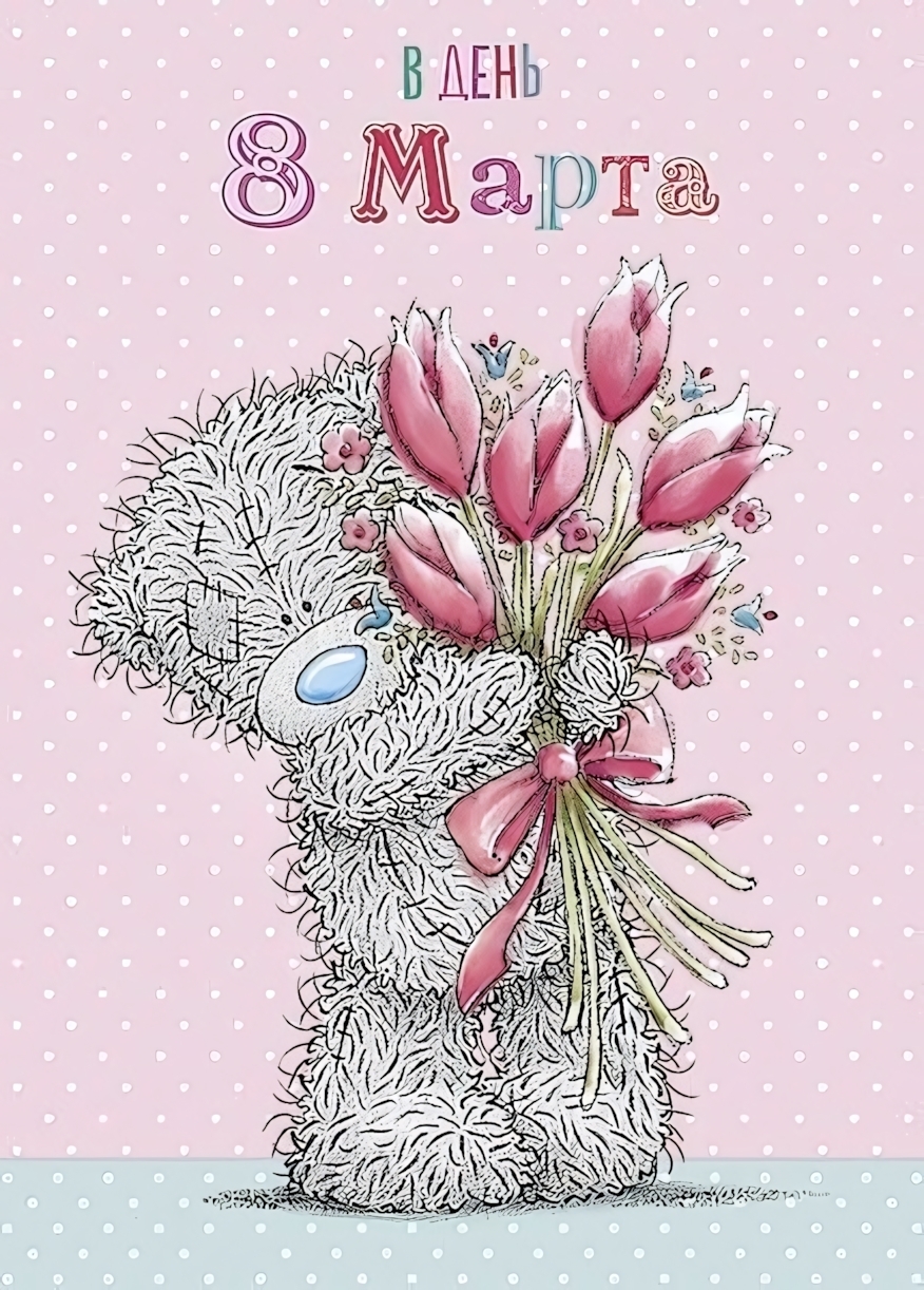 Открытка поздравительная «В День 8 Марта» с медвежонком, Me to You, акварельный дизайн