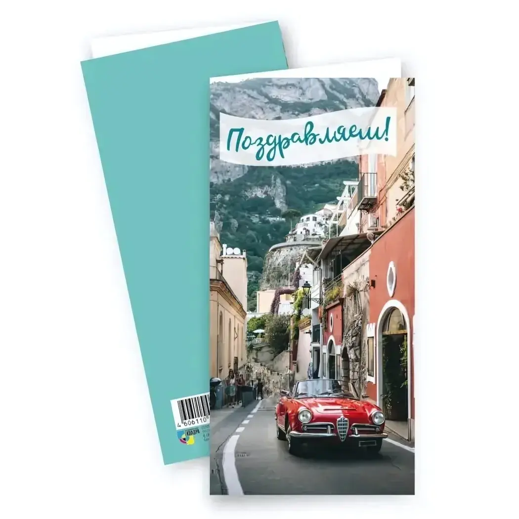 Открытка евро стандарт "Поздравляем Retro car", бумага, размер 10.5х14.8см