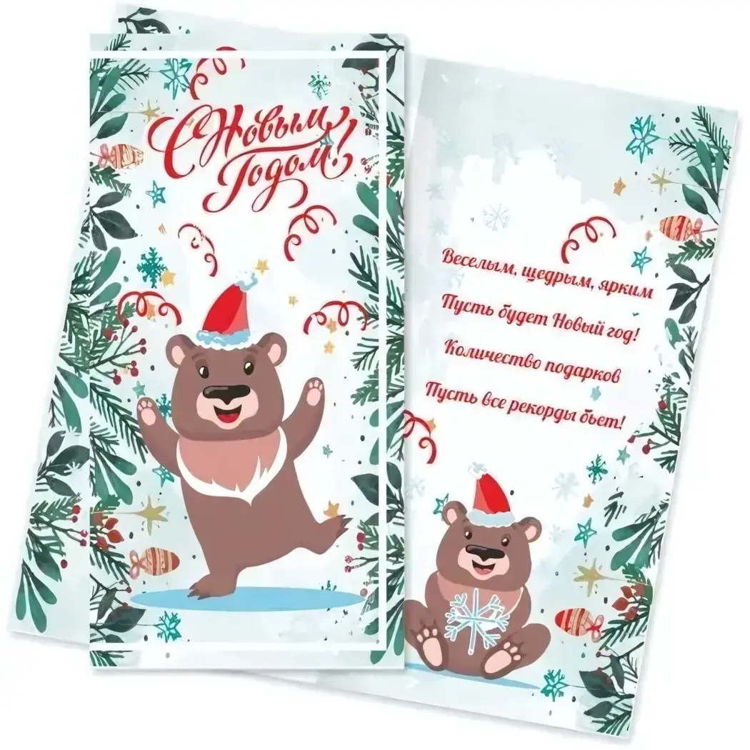 Открытка евро стандарт 'Медвежонок', новогодняя, с пожеланиями, размер 105х148мм