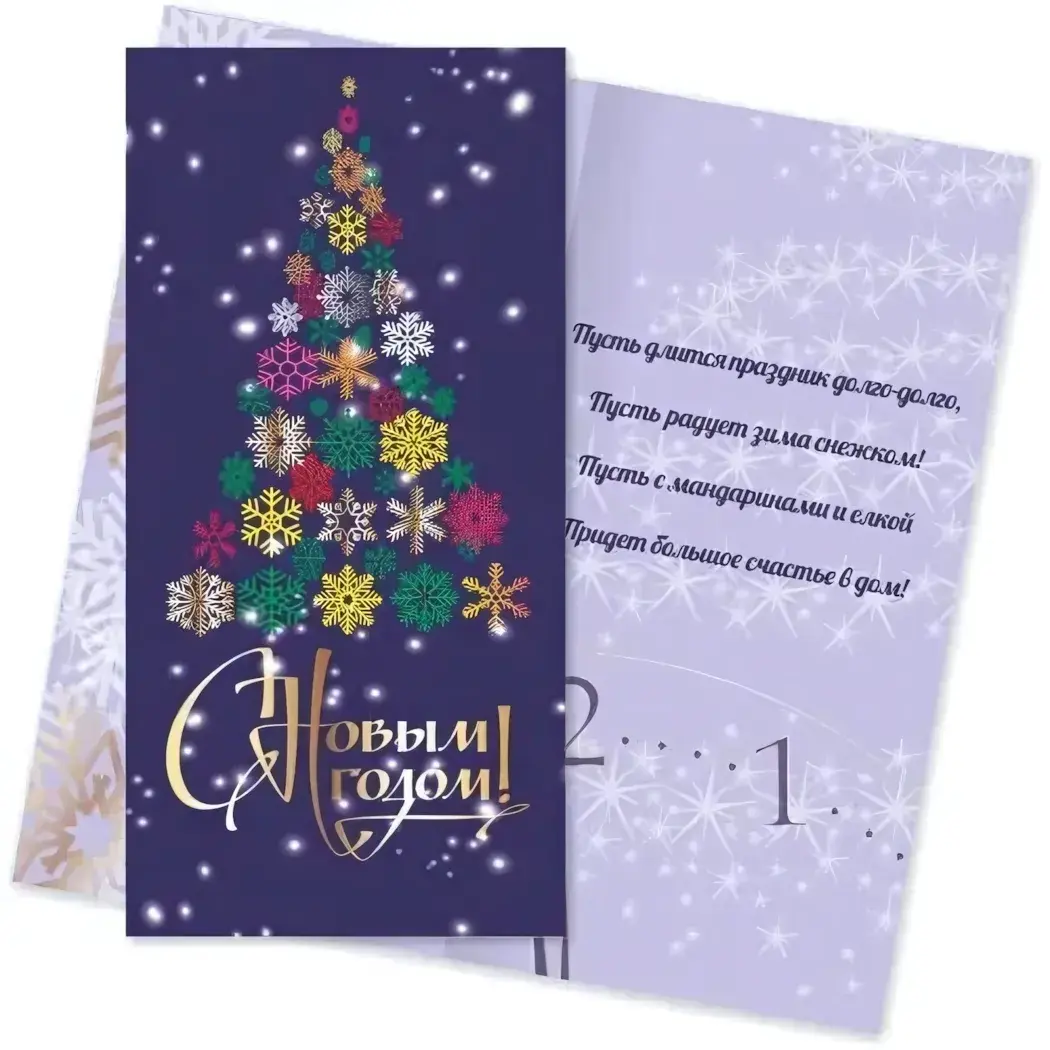 Создайте особую атмосферу праздника с изысканной открыткой евро стандарт "Ёлочка". Глубокий синий фон и золотая надпись "С Новым годом!" придадут вашим поздравлениям особую торжественность.