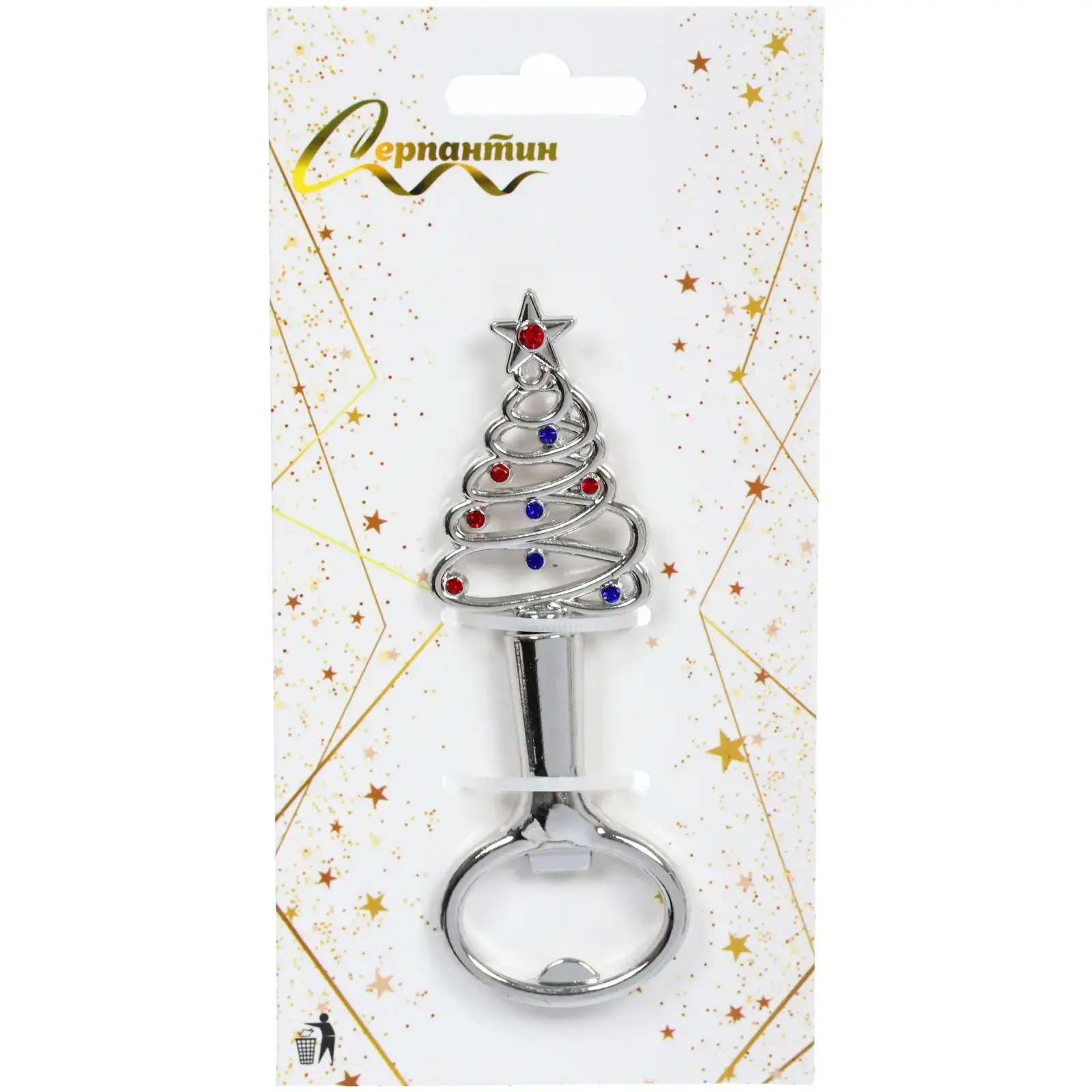 Открывалка для бутылок 'Ёлочка', металлическая, с камушками, новогодний декор