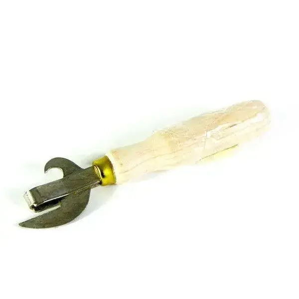 Консервный нож ручной с деревянной ручкой, металлический механизм, эргономичный дизайн
