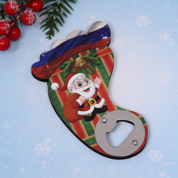 Праздничная открывашка для бутылок — это не просто полезный инструмент, но и яркий элемент новогоднего декора. С её помощью вы сможете легко открывать бутылки, создавая атмосферу веселья и уюта на празднике. Открывашка выполнена в виде забавного Санта-Клауса с мешком подарков, что делает её отличным подарком для друзей и близких.