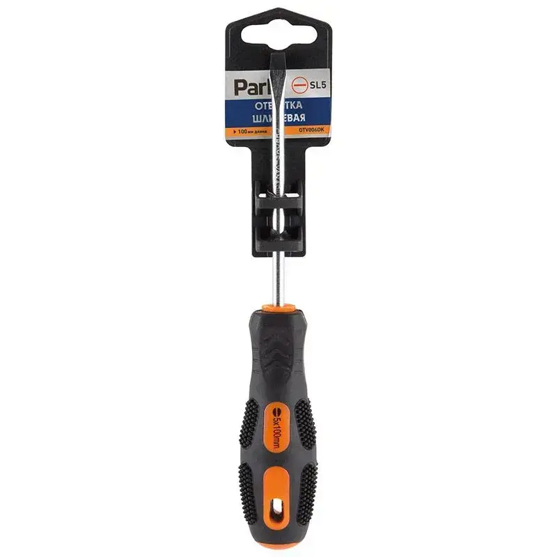 Отвертка шлицевая Park Strom SL5x10см, двухкомпонентная рукоятка с резиновыми вставками, 5x100 мм, черно-оранжевая