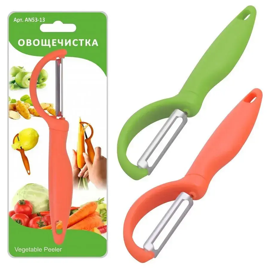 Овощечистка эргономичная с металлическим лезвием, пластиковая ручка, цвет в ассортименте