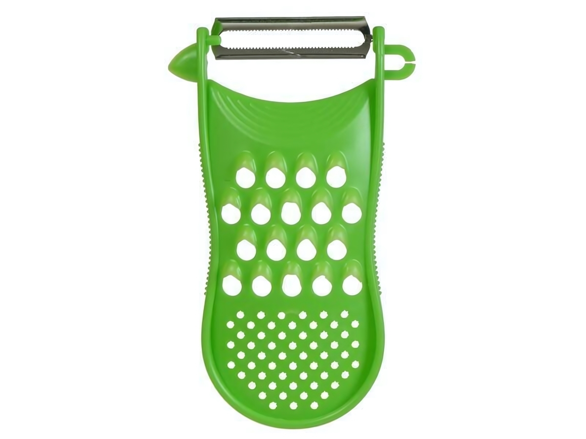 - Многофункциональность: сочетает в себе терку и нож для очистки.