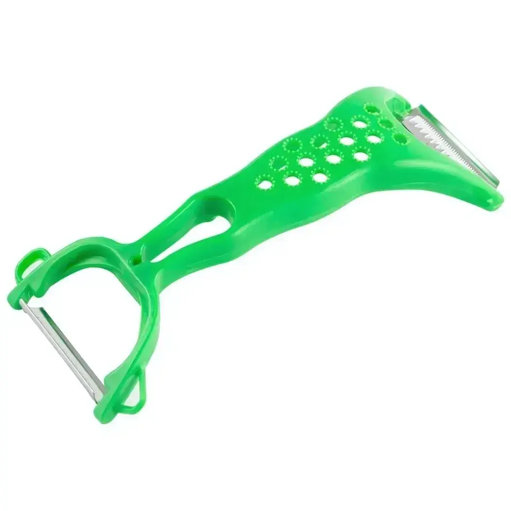 Пластиковый корпус повышенной прочности устойчив к деформациям и рассчитан на интенсивное использование. Удобная форма рукоятки снижает нагрузку на запястье даже при длительной работе. Острое лезвие из нержавеющей стали легко справляется с плотной кожурой кабачков, картофеля и яблок.