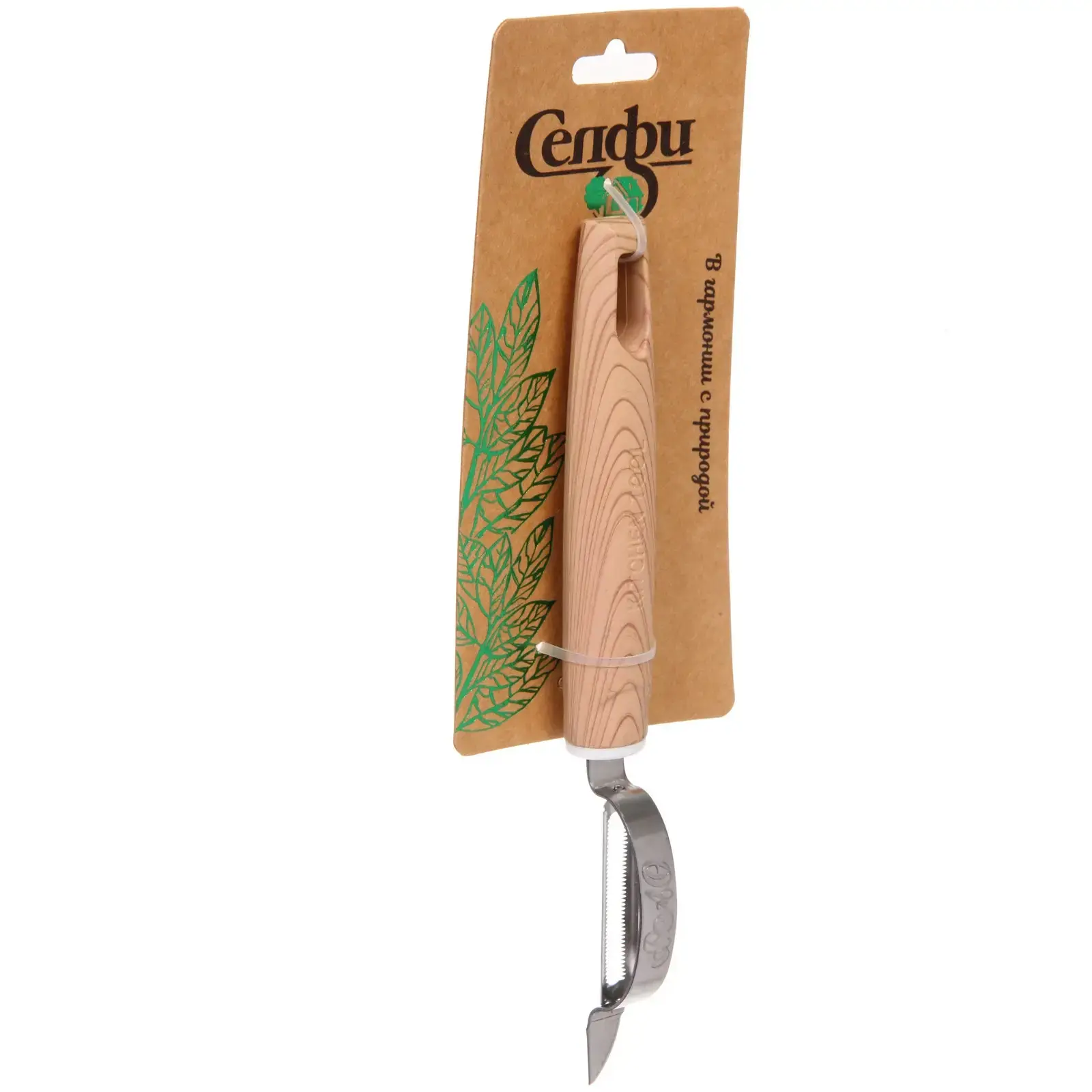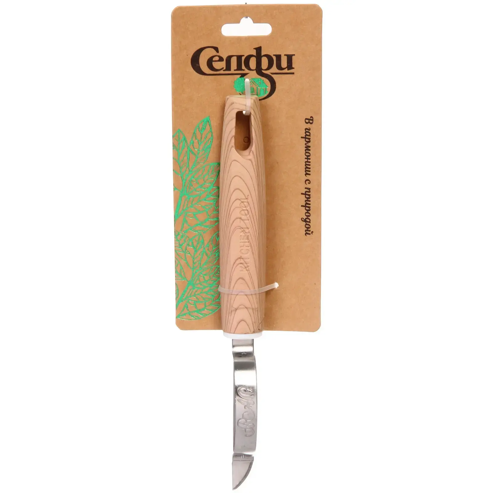 Овощечистка выполнена из качественных материалов: металлическое лезвие и деревянная ручка. Размеры инструмента позволяют удобно хранить его в любом кухонном ящике. Упаковка оформлена в природном стиле, что подчеркивает экологичность продукта. Овощечистка «ECO LIFE» — это не просто инструмент, а ваш верный помощник на кухне!