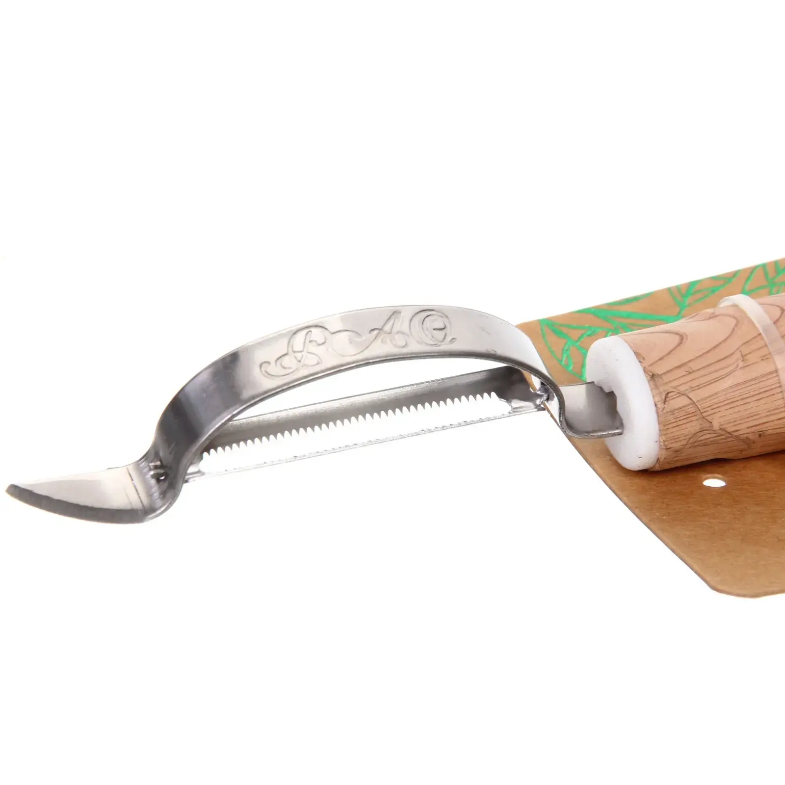 Выбирая овощечистку «ECO LIFE», вы получаете не только стильный и функциональный инструмент, но и возможность сократить время на приготовление блюд. Металлическое лезвие с блестящей поверхностью обеспечивает легкость в уходе и долговечность, а деревянная ручка с округлой формой гарантирует комфортный захват. Этот аксессуар станет отличным дополнением к вашей кухонной утвари.