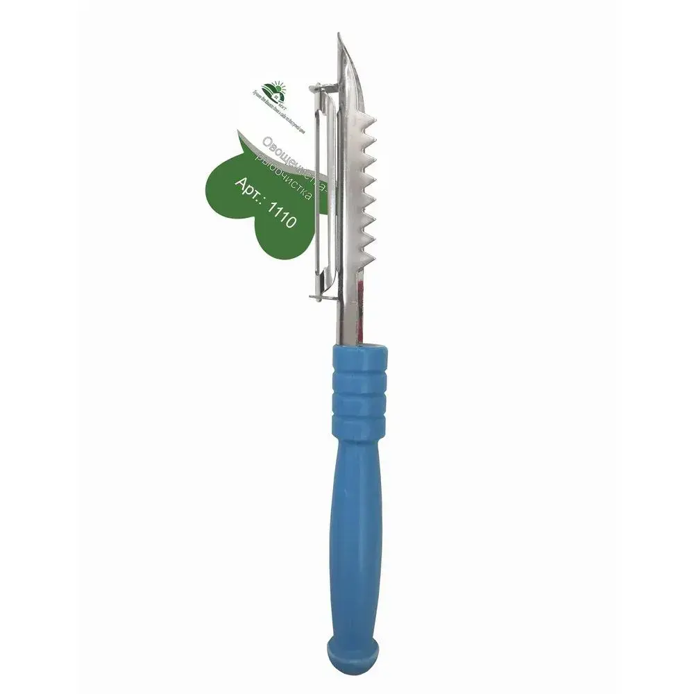 - Зазубренное лезвие легко снимает кожуру и чешую без лишних усилий