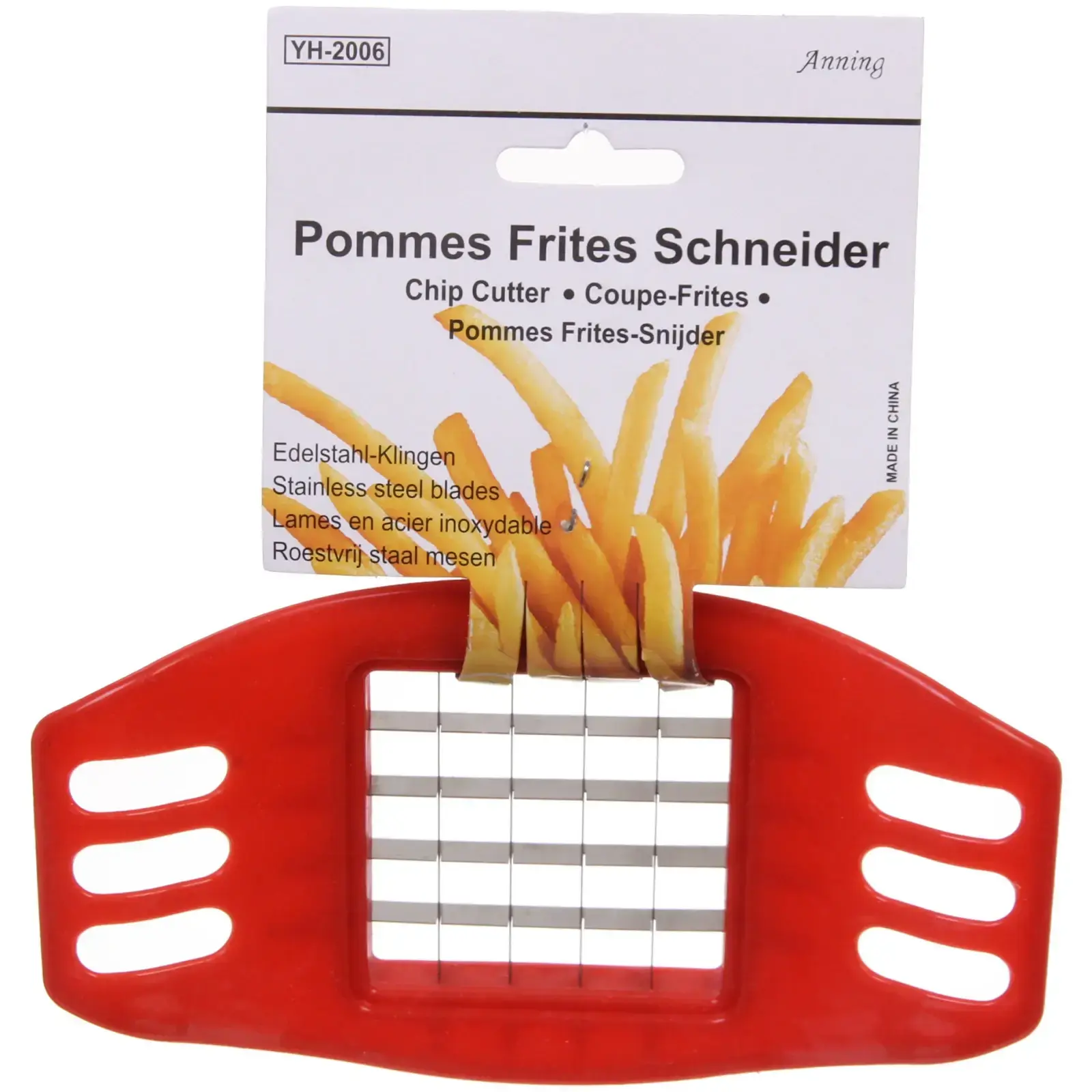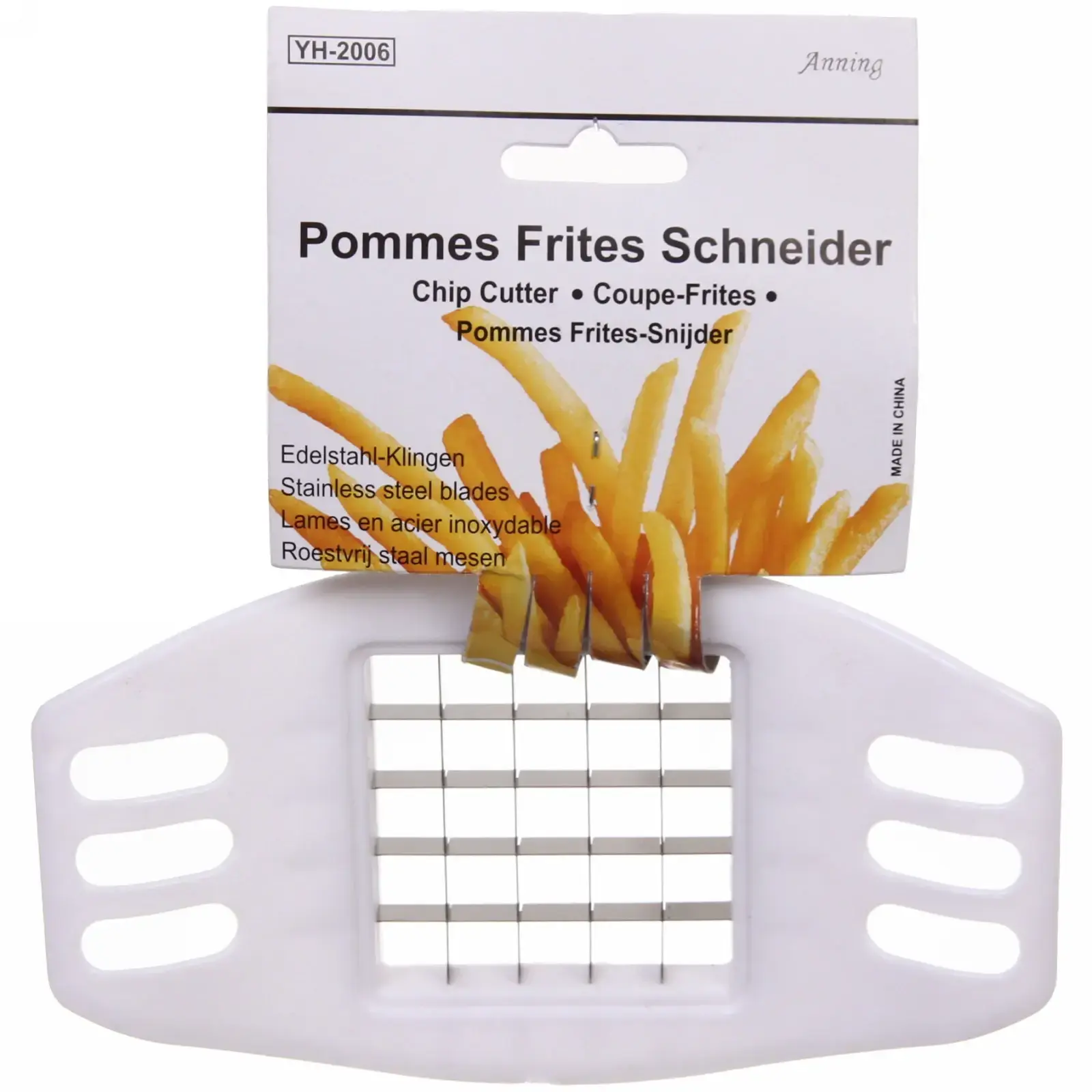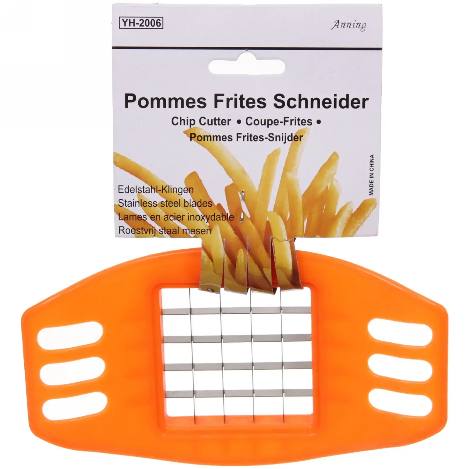 Просто расположите овощ или картофель на рабочей поверхности, нажмите прибором сверху и получите ровные полоски или кубики. После использования рекомендуется промыть изделие под проточной водой. Не используйте для твердых несъедобных продуктов. Эргономика и качество материалов обеспечивают долгий срок службы без потери остроты лезвий и целостности корпуса.