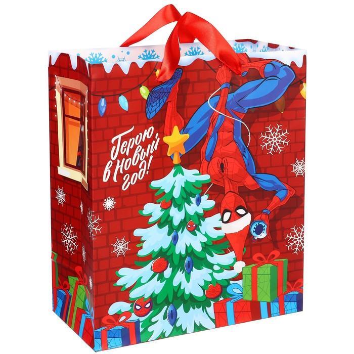 Пакет подарочный "Герою в Новый год!" Disney, 23х27х11,5 см, ламинированный, красный, с Человеком-пауком