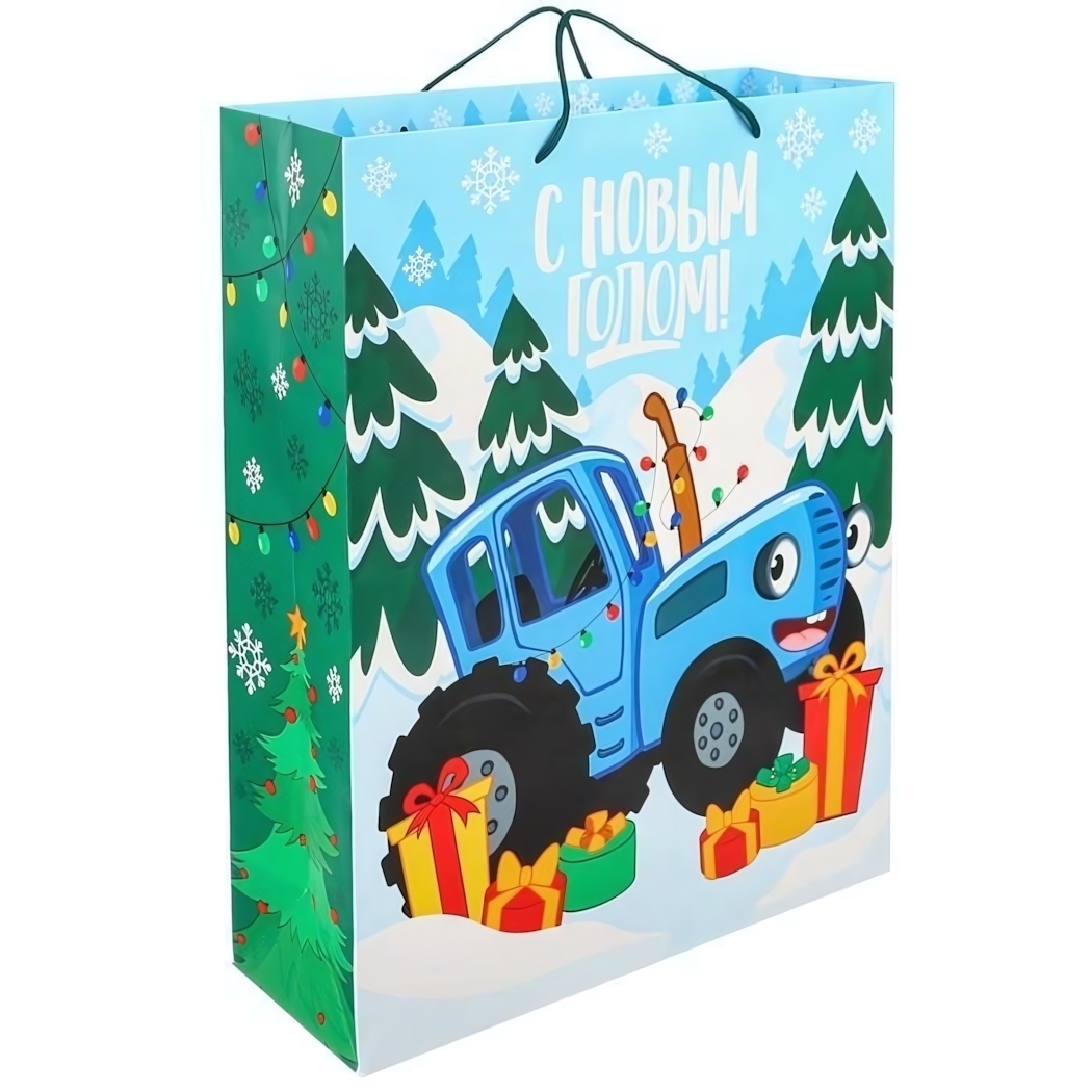 Подарочный пакет Disney "С Новым годом! Синий Трактор", 31х40х11,5см, голубой с иллюстрациями, ручки зеленые