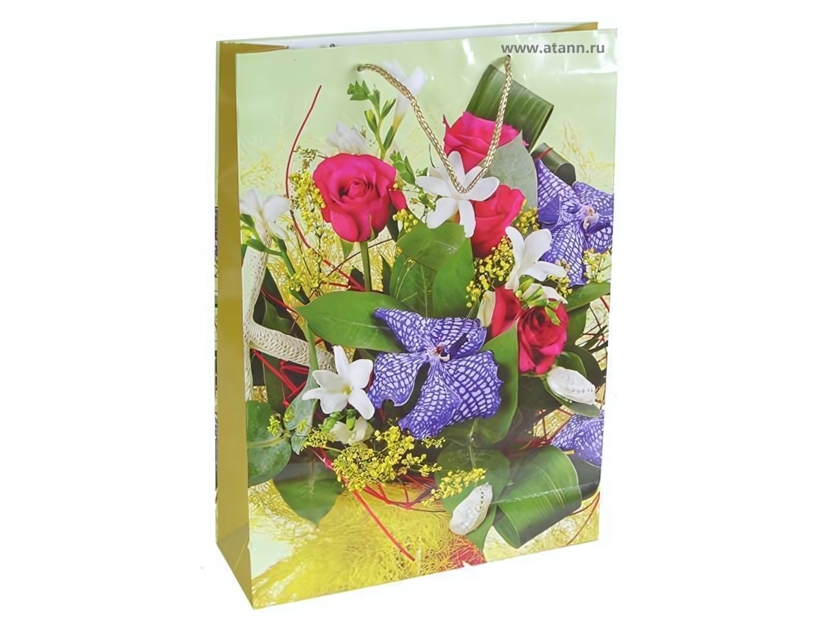 Пакет бумажный «Цветы» 32x45x11см с ручками — эффектное решение для упаковки подарков