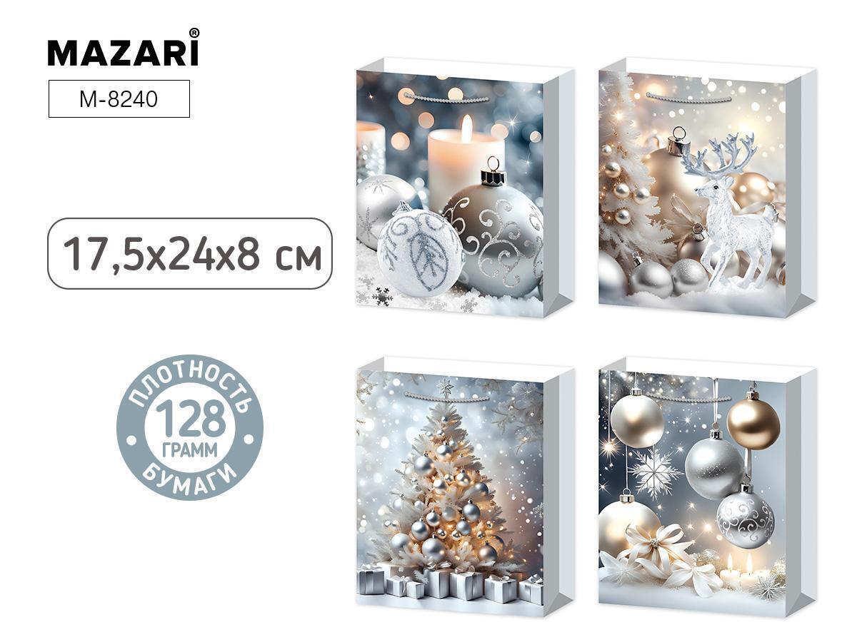 Пакет бумажный подарочный 17.5x24x8см, микс новогодних дизайнов, цвет в ассортименте