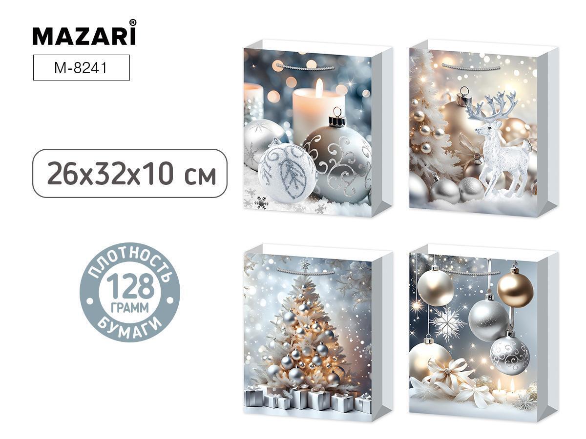 Погрузитесь в атмосферу праздника с подарочным бумажным пакетом серебряных оттенков — изысканный выбор для тех, кто ценит стиль и заботится о красивой подаче сюрприза. Каждый из четырёх уникальных дизайнов пакета наполнен зимними мотивами, переливами блестящей отделки, снежной игрой и новогодним декором, чтобы ваш подарок выглядел особенно привлекательно.