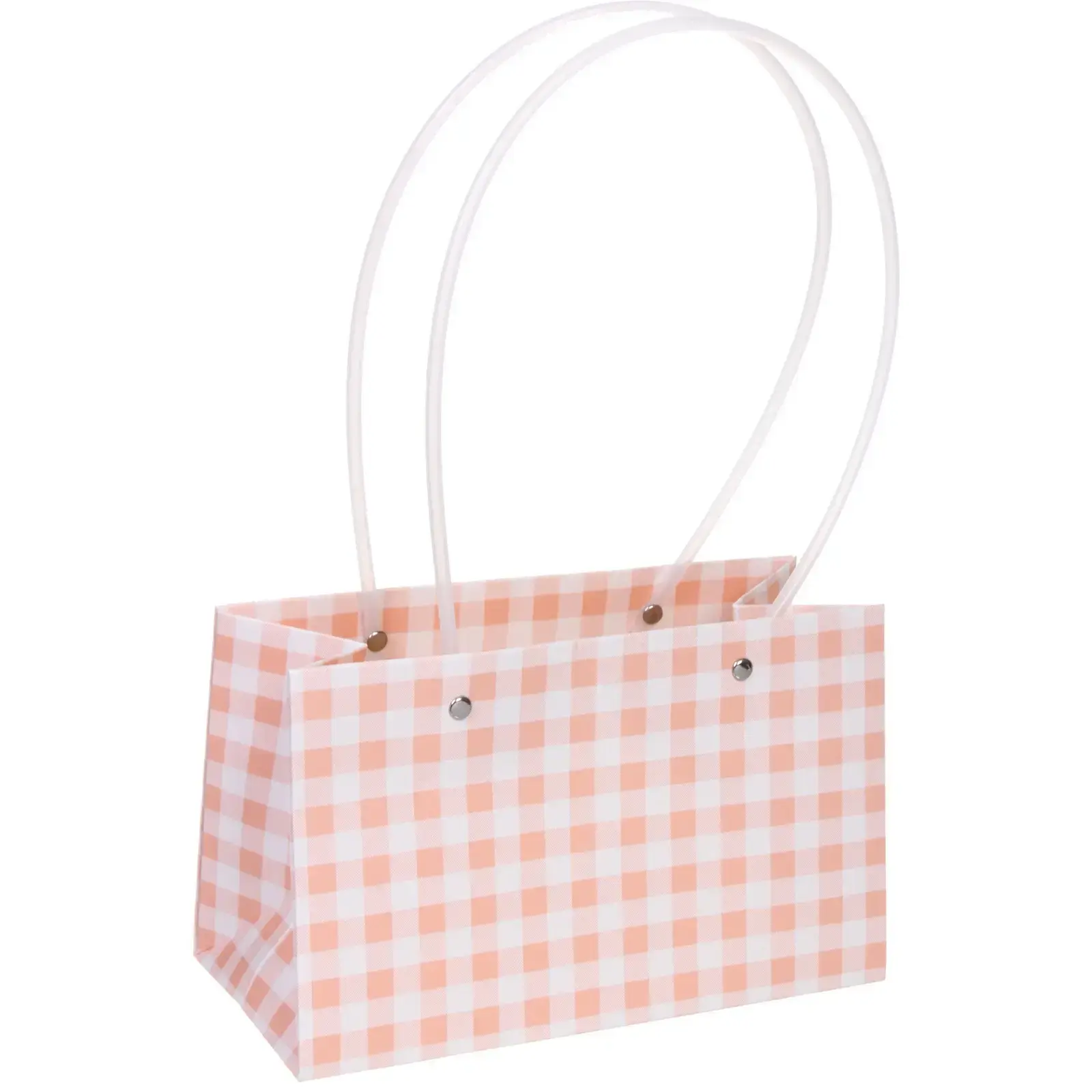 Ищете идеальный способ подарить цветы или сюрприз? Пакет для цветов и подарков «Гармония» станет вашим незаменимым помощником! Этот стильный и практичный пакет выполнен из качественного картона, что обеспечивает надежность и долговечность. Его светло-розовый цвет с клетчатым узором добавляет нотку элегантности и радости, делая ваш подарок еще более привлекательным.
