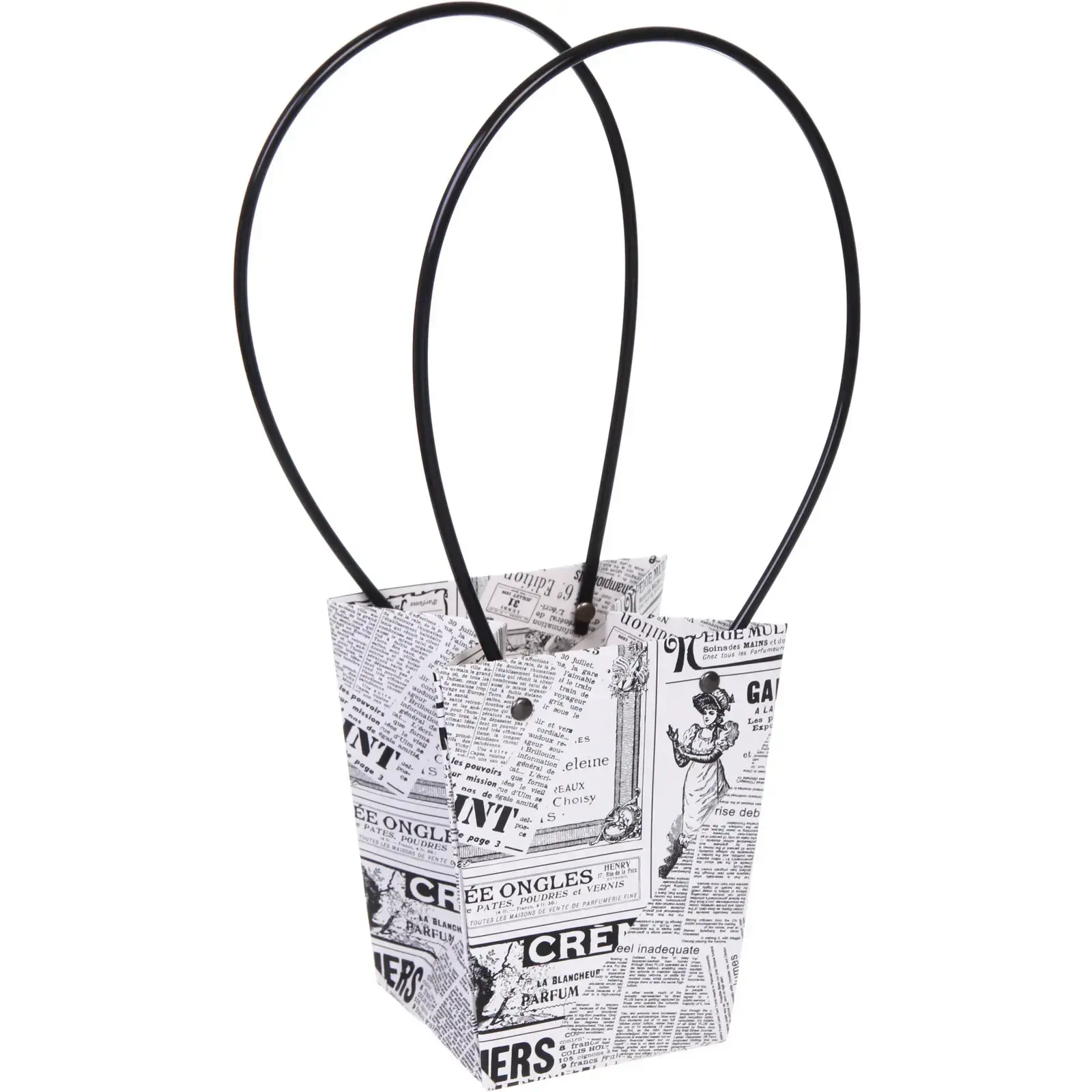 Пакет «Газета» имеет размеры 15,5х13х9,5 см, что делает его подходящим для различных предметов, от цветов до небольших подарков. Две прочные черные ручки обеспечивают комфортное ношение, а стильный черно-белый дизайн с газетной печатью добавляет уникальности. Этот пакет идеально подходит для использования в магазинах или для личных нужд, когда вы хотите удивить своих близких.