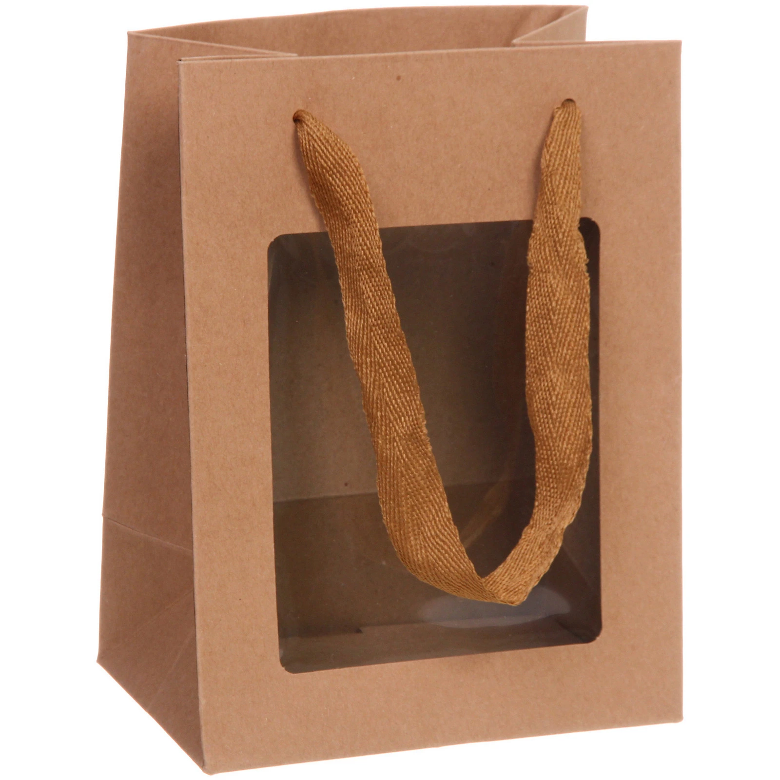 Пакет для цветов и подарков «Искренний подарок» с прозрачным окном, 15х10х20 см, коричневый, с текстильными ручками