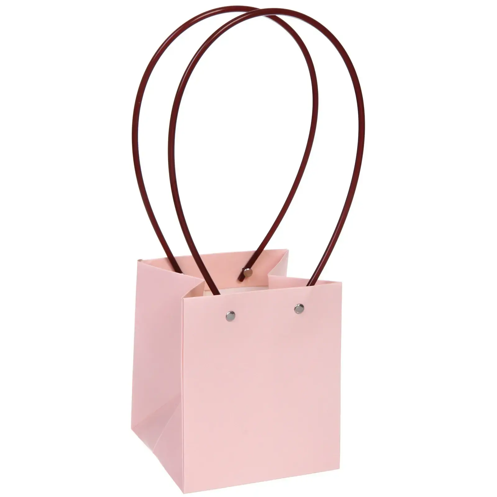 Пакет имеет размеры 15х13х12,5 см, что позволяет удобно упаковать не только цветы, но и небольшие подарки. Две прочные ручки темно-коричневого цвета обеспечивают комфортное переношение, а гладкая поверхность пакета придает ему элегантный вид. Он идеально подходит для использования на днях рождения, свадьбах, юбилеях и других торжествах.