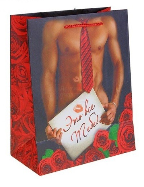 Стильный пакет 'Это все тебе' создан для особенных подарков. Его провокационный дизайн и игривый посыл сделают вручение подарка незабываемым моментом.