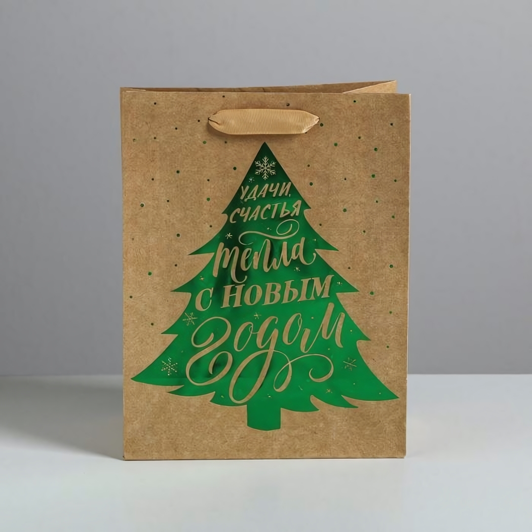 Подарочный пакет «Ёлочка нарядная» станет идеальным решением для упаковки новогодних сюрпризов. Его теплый коричневый цвет в сочетании с изящным дизайном создает атмосферу зимней сказки.