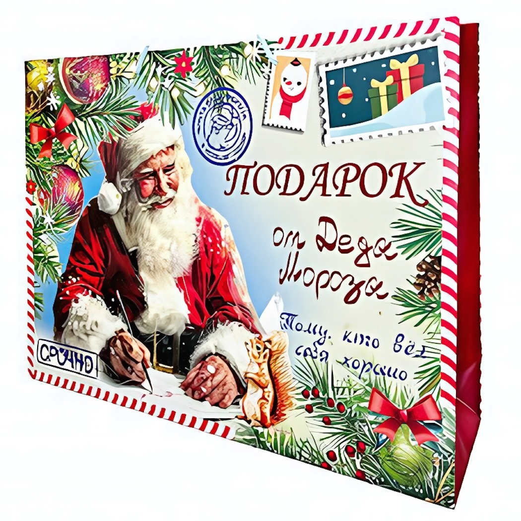 Этот яркий пакет станет идеальным компаньоном для подарков к Новому году и другим праздникам. Погрузитесь в атмосферу волшебства, которую принесет с собой этот ламинированный пакет. Он выполнен в красном, белом и зеленом цветах, украшен изображением Деда Мороза, а также новогодними элементами, такими как снежинки и елочные игрушки.