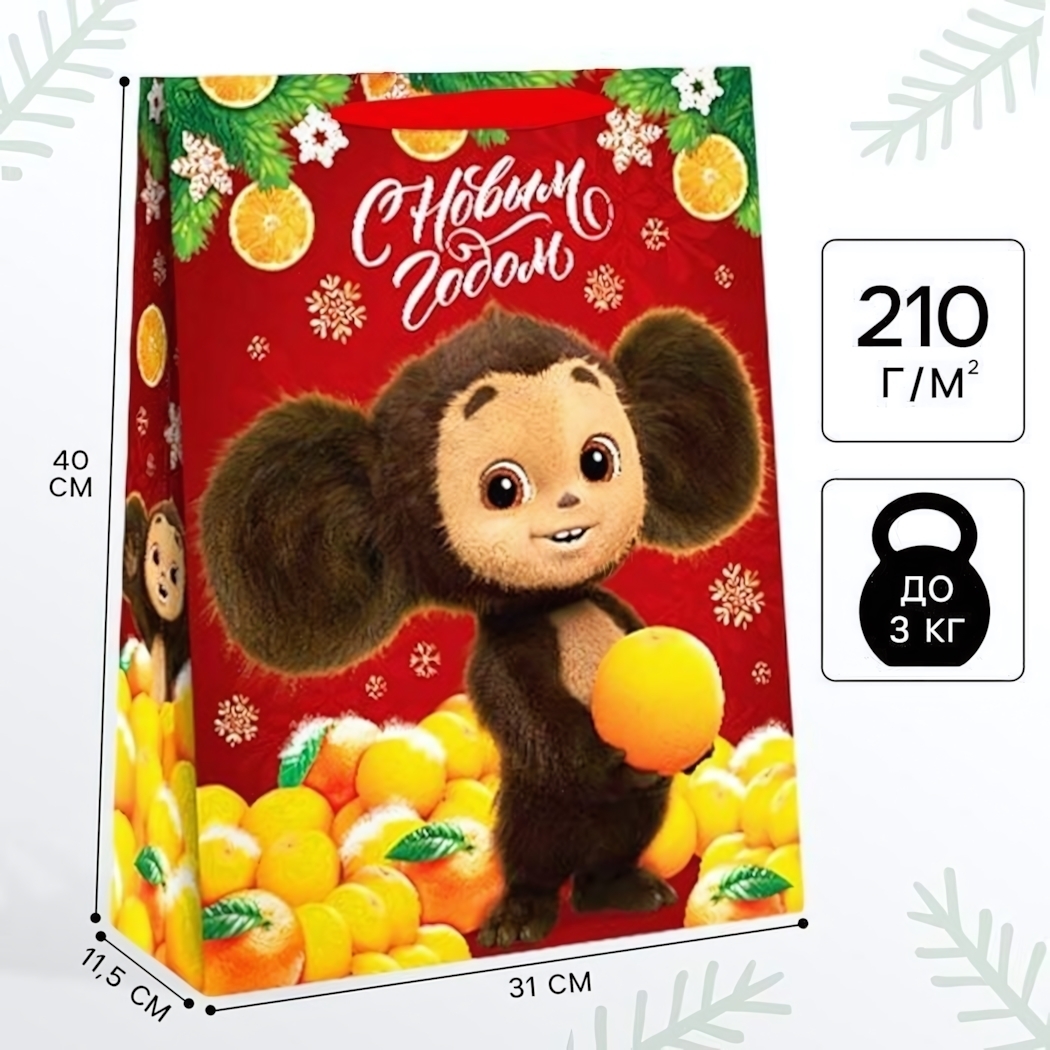 Пакет подарочный ламинированный "С Новым Годом. Чебурашка", красный, 31х40х11,5 см, до 3 кг