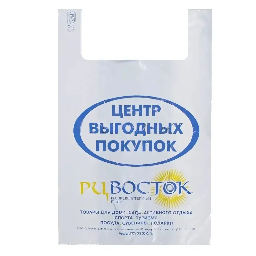 Пакет представлен в различных цветовых решениях (цвет определяется случайным образом из доступного ассортимента). Логотип 'РЦ Восток' и информативный принт добавляют стиля и узнаваемости.