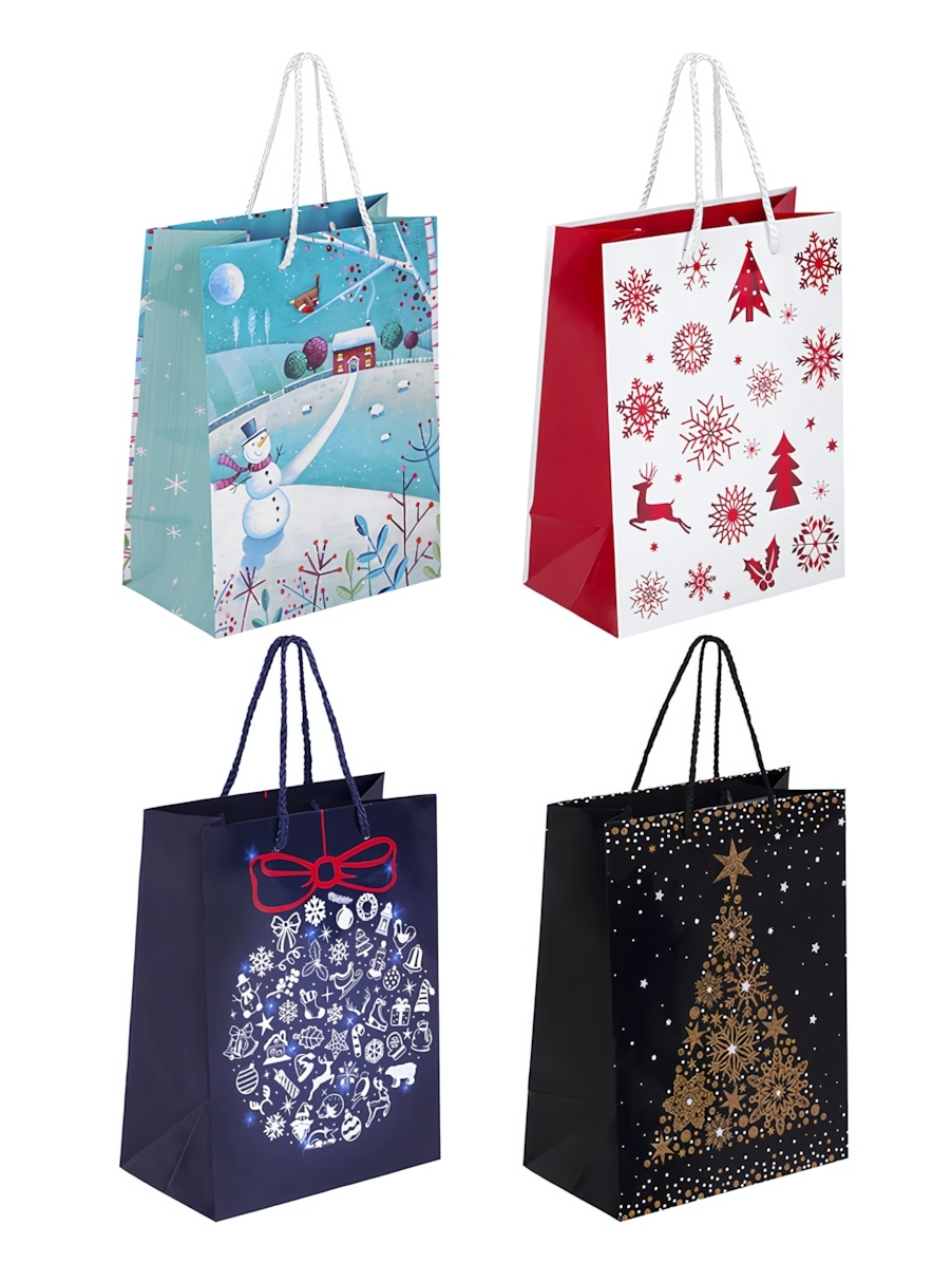 Пакет новогодний 18x10x23см 'Collection Medium' цвета в ассортименте (Золотая сказка)