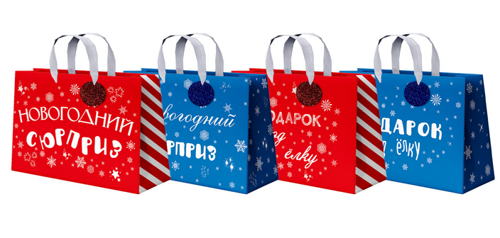 Размер: 27х20х11 см — оптимальный формат для упаковки различных подарков. Верхняя часть украшена блестящим синим или красным помпоном и снежинками, что добавляет праздничной атмосферы. Такой пакет отлично подойдет для новогодних праздников, корпоративных мероприятий или семейных торжеств, делая подарок запоминающимся и уникальным.