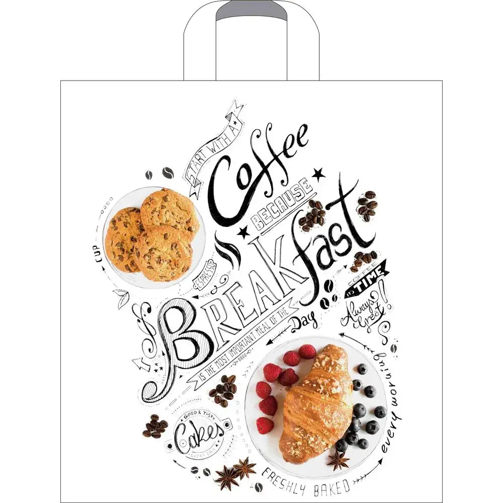 Пакет ПЭ с петлевой ручкой 38+3, комплект 50 шт, дизайн 'Завтрак', Россия