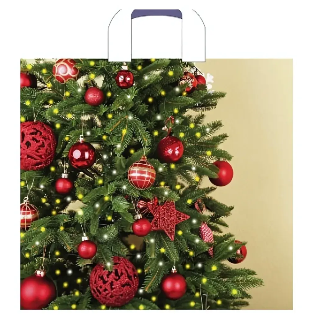 Этот пакет подходит для использования в различных ситуациях: от упаковки подарков до хранения новогодних украшений. Он станет отличным помощником для тех, кто ценит удобство и стиль. Пакет легко носить благодаря прочным петлевым ручкам, что делает его идеальным для покупок и подарков.