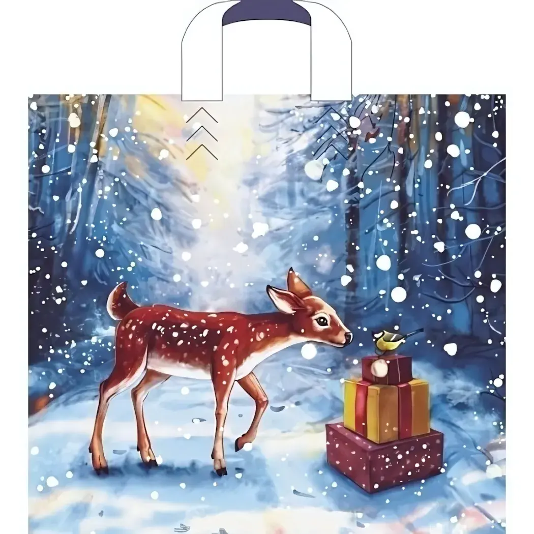Создайте атмосферу праздника с нашим пакетом ПЭ с петлевой ручкой. Этот стильный и практичный пакет идеально подходит для упаковки новогодних подарков, добавляя нотку волшебства в каждый момент. Яркий дизайн с оленем и подарками на фоне зимнего пейзажа создаст настроение и порадует ваших близких.