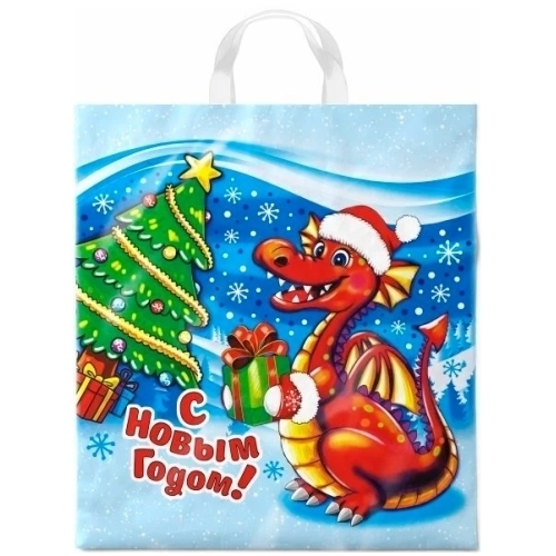Пакет ПЭ с петлевой ручкой 38х42+6 см — это не просто упаковка, а стильный аксессуар для праздника. Его яркий новогодний дизайн с изображением дракона в шапке Санта-Клауса и елки создаст атмосферу волшебства и радости. Этот пакет станет отличным решением для подарков, угощений или покупок в праздничные дни.