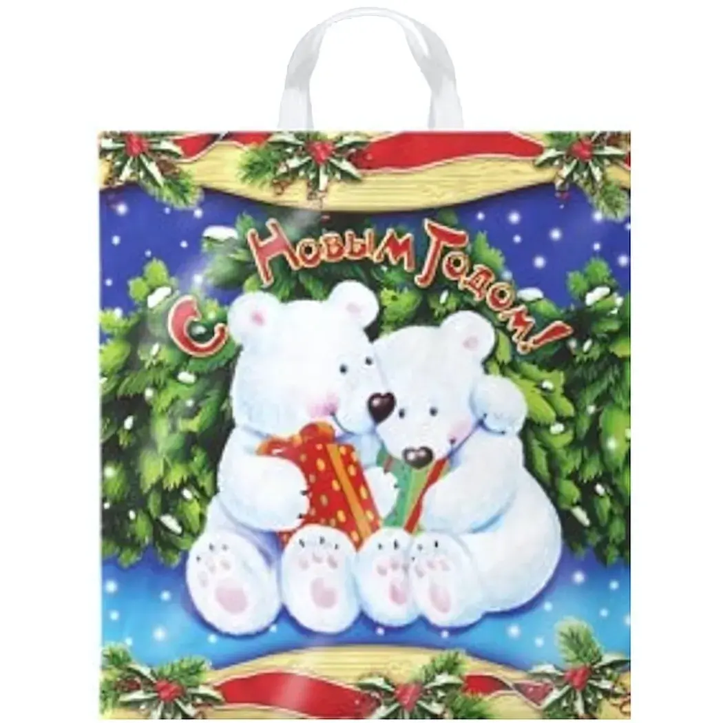 Пакет подарочный новогодний 38х42см, с ручками, 'Белые медведи', ПНД