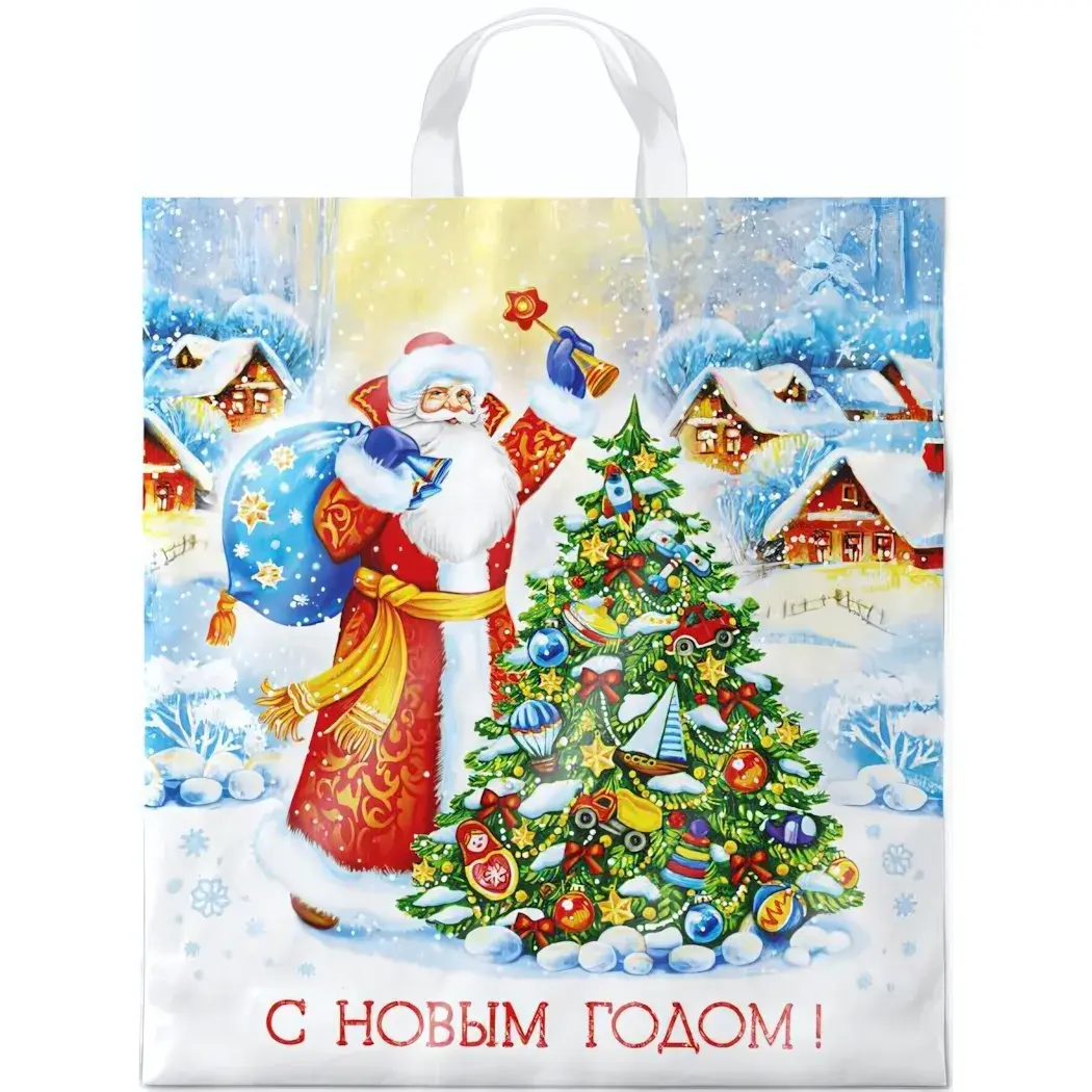 Пакет ПЭ с петлевой ручкой для новогодних подарков