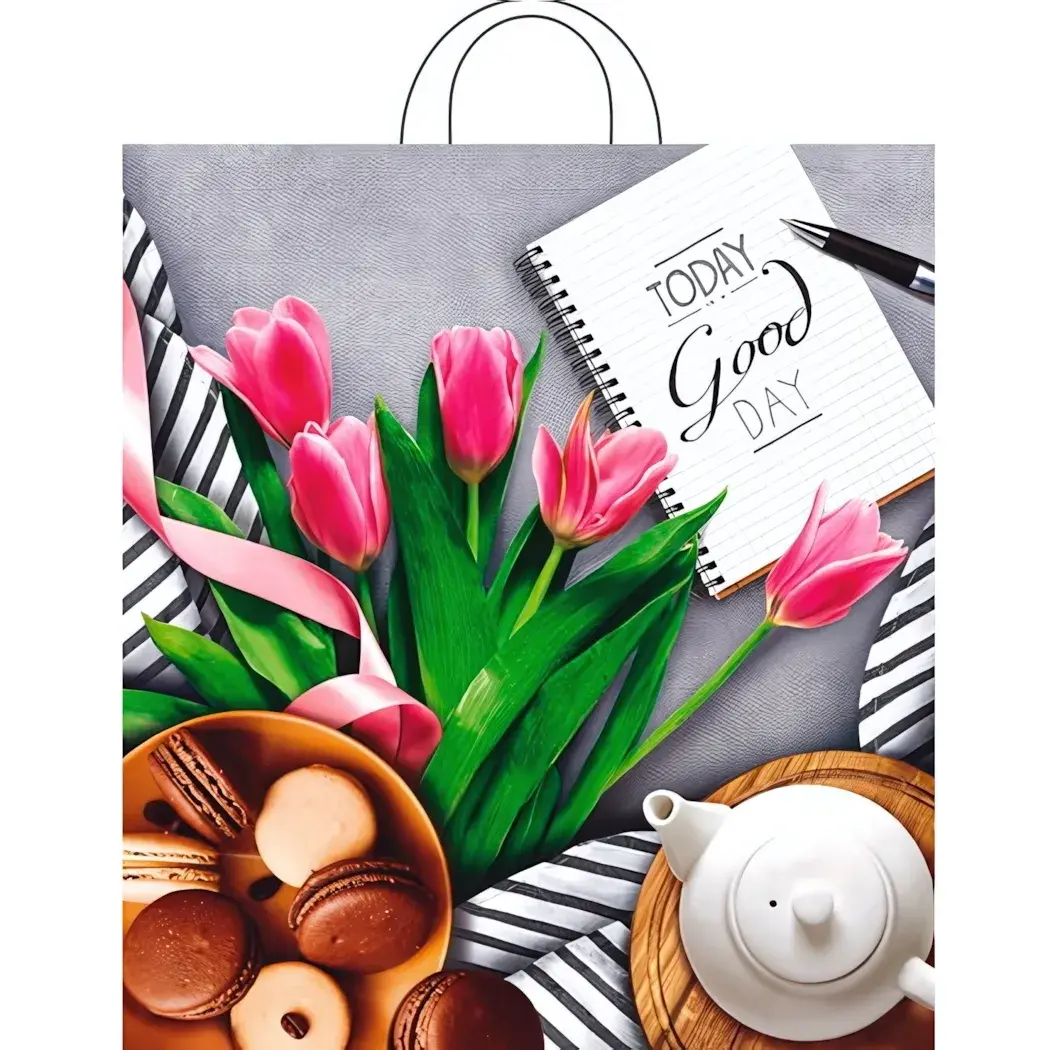 Этот пакет идеально подходит для использования в различных ситуациях: от упаковки подарков до покупок в магазине. Он станет отличным дополнением к любому празднику, а также поможет вам организовать повседневные покупки. Благодаря своим размерам 38х42+6 см, он вмещает множество предметов, что делает его универсальным помощником в быту.