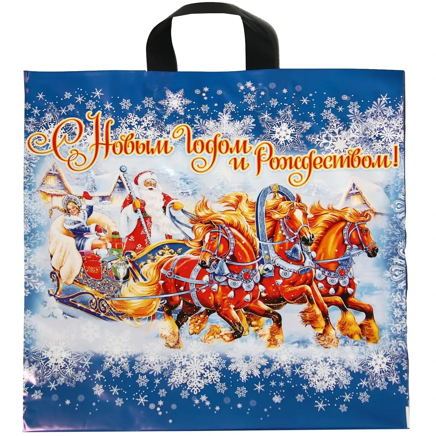 Пакет изготовлен из качественного полиэтилена, что обеспечивает его долговечность и надежность. Он не только красивый, но и практичный, что делает его идеальным выбором для новогодних праздников.