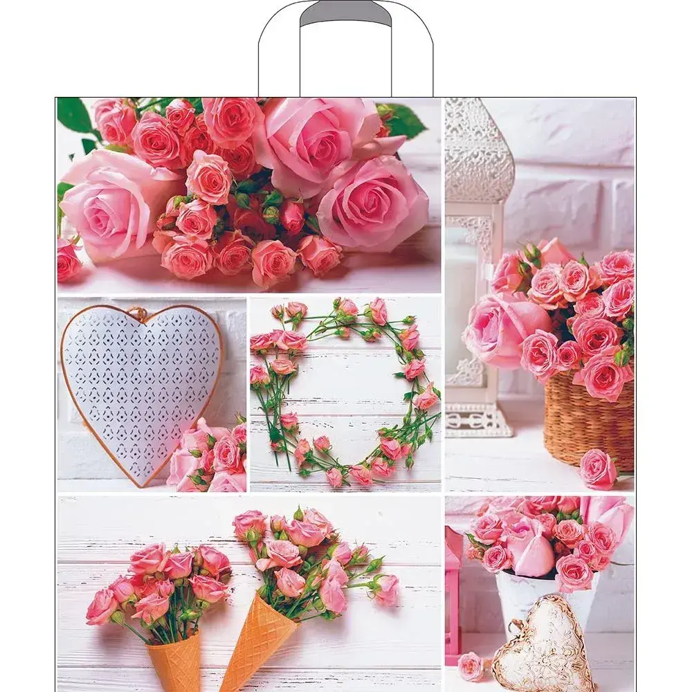 Пакет с петлевой ручкой "Романтичная роза" 45+3 см, комплект 25 шт, ПЭ, цветочный дизайн