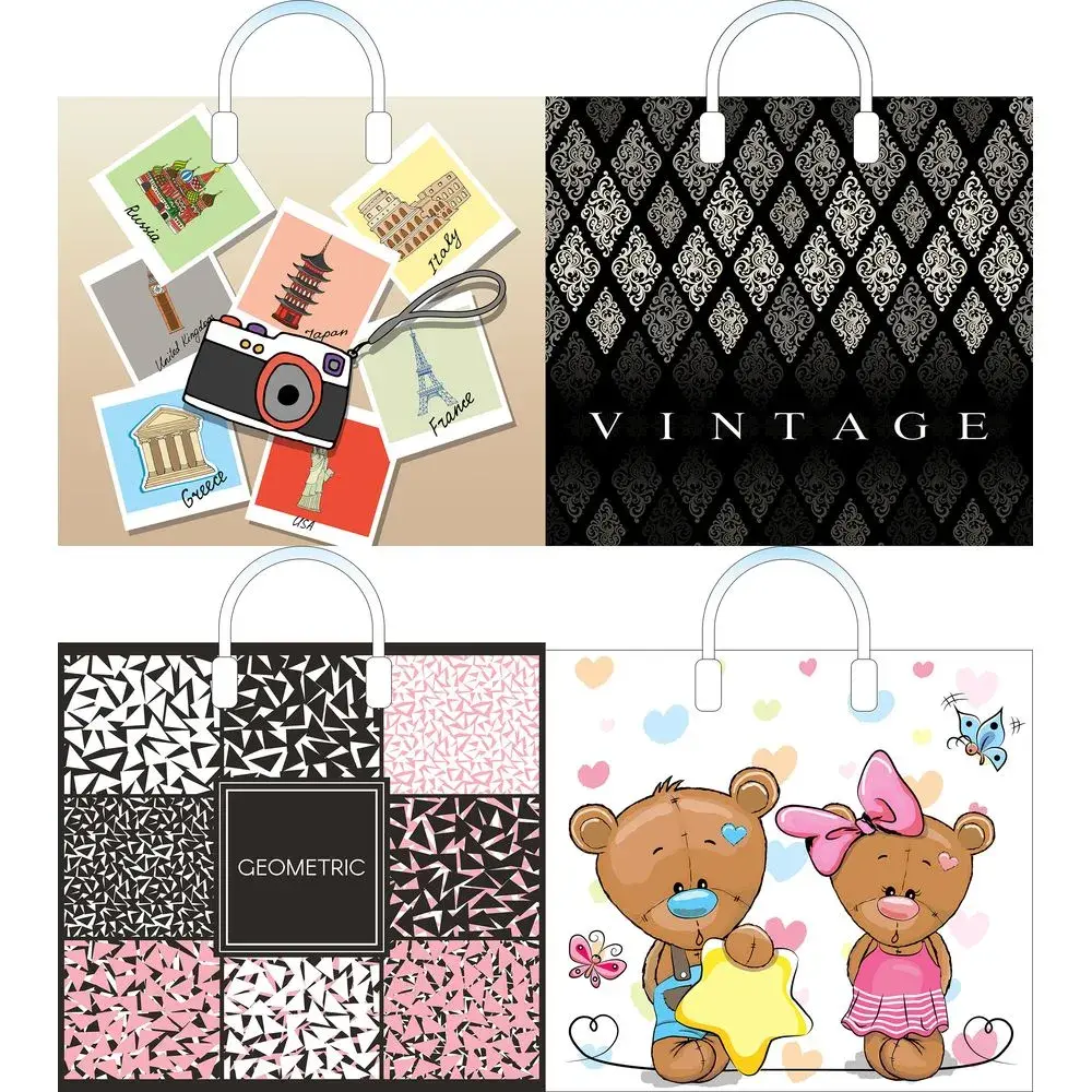 Пакет с ручками "Ассорти нейтрал" 38+10 см, ПЭ, комплект 10 шт, прочные и удобные