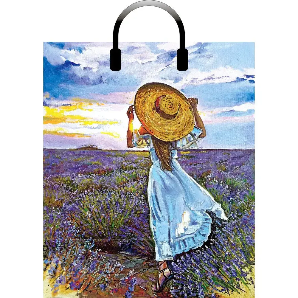 Пакет ПЭ с ручками 38+3см, "Лавандовое поле", комплект 10 штук
