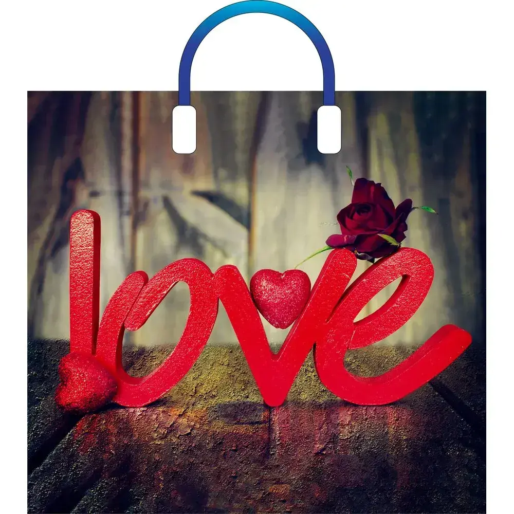 Пакет подарочный ПЭ с ручками 38+3см, дизайн 'Love', комплект 10 шт, прочный пластик, Артпласт