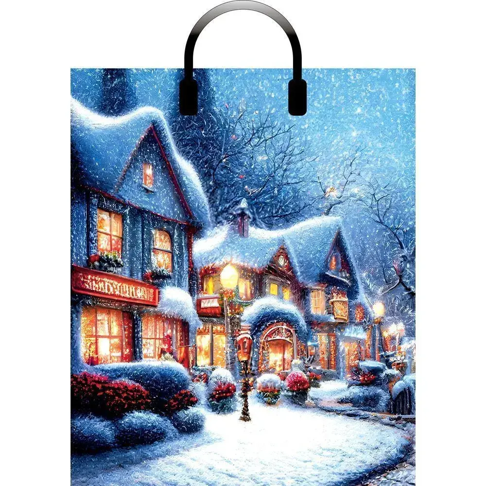 Пакет ПЭ с ручками 38+3см "Рождественская ночь", комплект 5 шт, праздничный дизайн