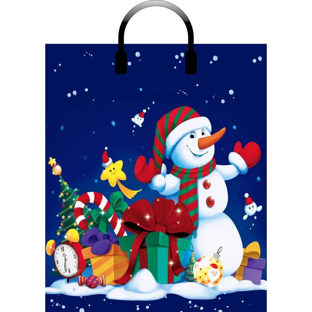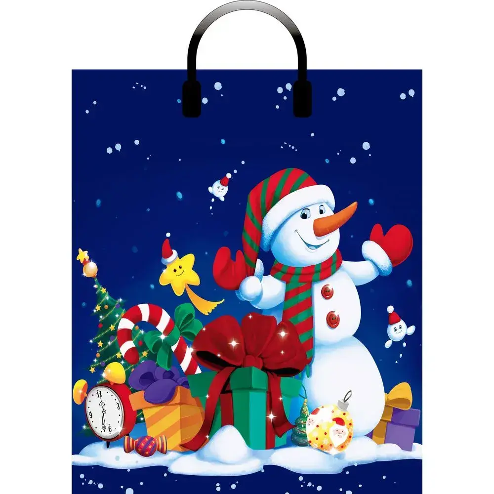 Пакет ПЭ с ручками 38+3см "Снеговичок с подарками", комплект 5 штук