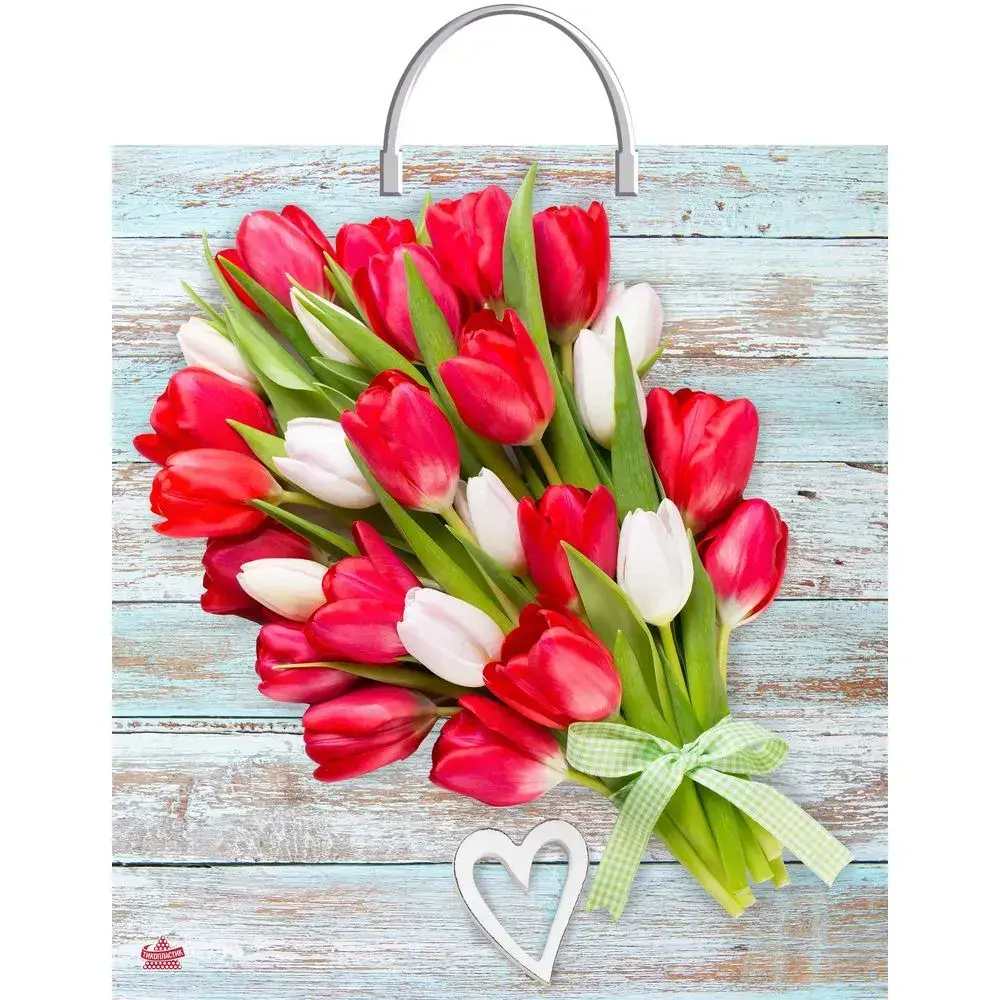 Создайте незабываемое первое впечатление с элегантными пакетами, сочетающими практичность и праздничный стиль. Яркий принт с тюльпанами в сочных красно-белых тонах превратит обычную упаковку в завершающий акцент вашего подарка.