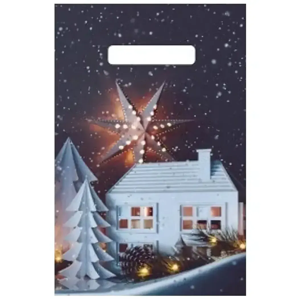 Пакет ПЭ с вырубной ручкой 20х30см, плотный полиэтилен, новогодний принт