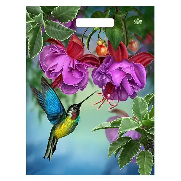 Пакет ПЭ с вырубной ручкой 31х6 см, глянцевый, дизайн "Колибри", комплект 50 шт