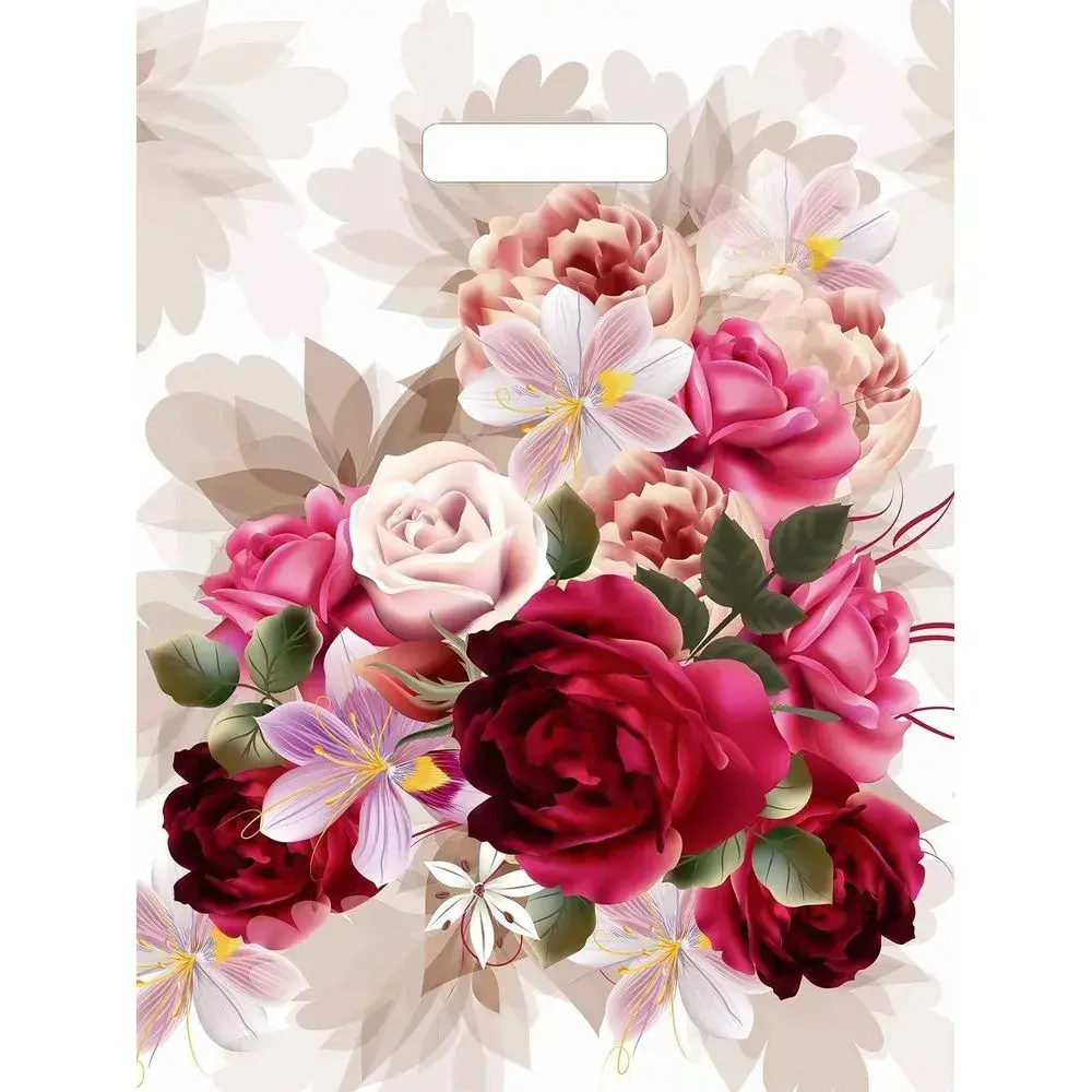 Набор из 50 прочных глянцевых пакетов с изысканным цветочным принтом станет идеальным решением для торжественных случаев. Элегантный дизайн с пионами на нежном бежевом фоне подчеркнет ваше внимание к деталям.