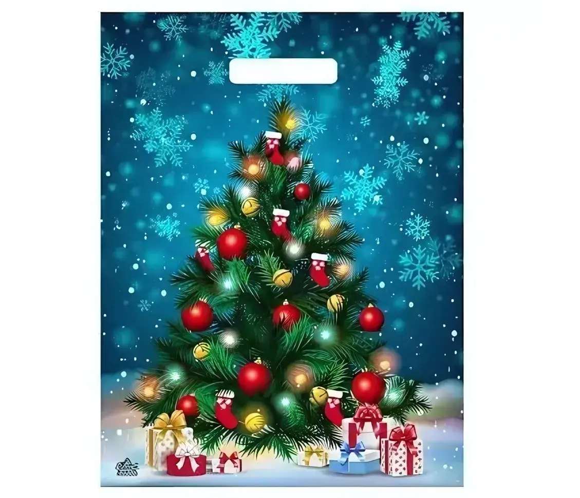 Создайте атмосферу волшебства и радости, упаковав подарки в эстетичный пакет с вырубной ручкой и праздничным рисунком «яркая елочка». Глянцевая поверхность подчёркивает яркие цвета, а прочный полиэтилен гарантирует надёжность и сохранность содержимого.